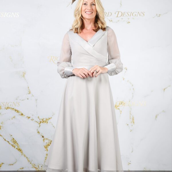 FOC: Floaty feminine chiffon sleeves and skirt cleverly combine with jersey for comfort and easy fitting. Fashionable puff sleeves with satin cuffs, satin neckline and floating satin waistband add tasteful details to elevate your appearance.