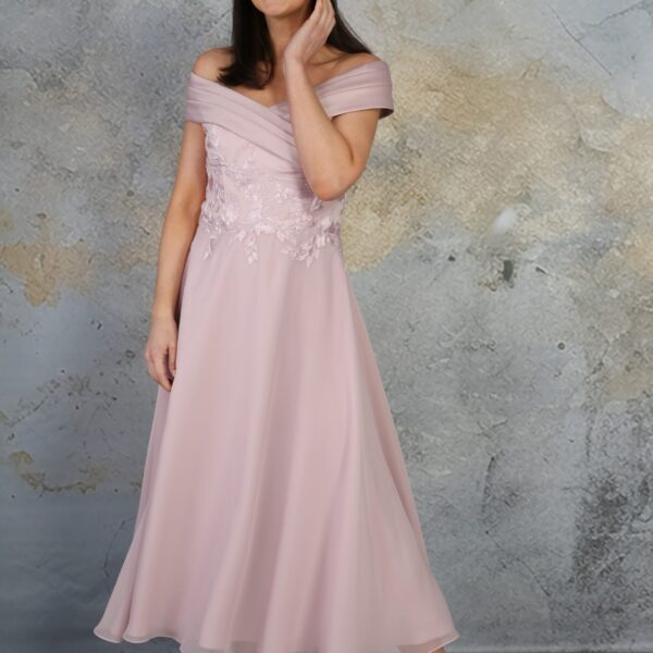 An elegant and sophisticated layered chiffon gown with a dipped hem skirt with a soft silk white edge. The diagonal overlay adds a layering effect and flows as you dance the night away. This gorgeous dress is double lined with our smooth woven lining, and fastens with a single fabric covered button and concealed zip at the centre back.