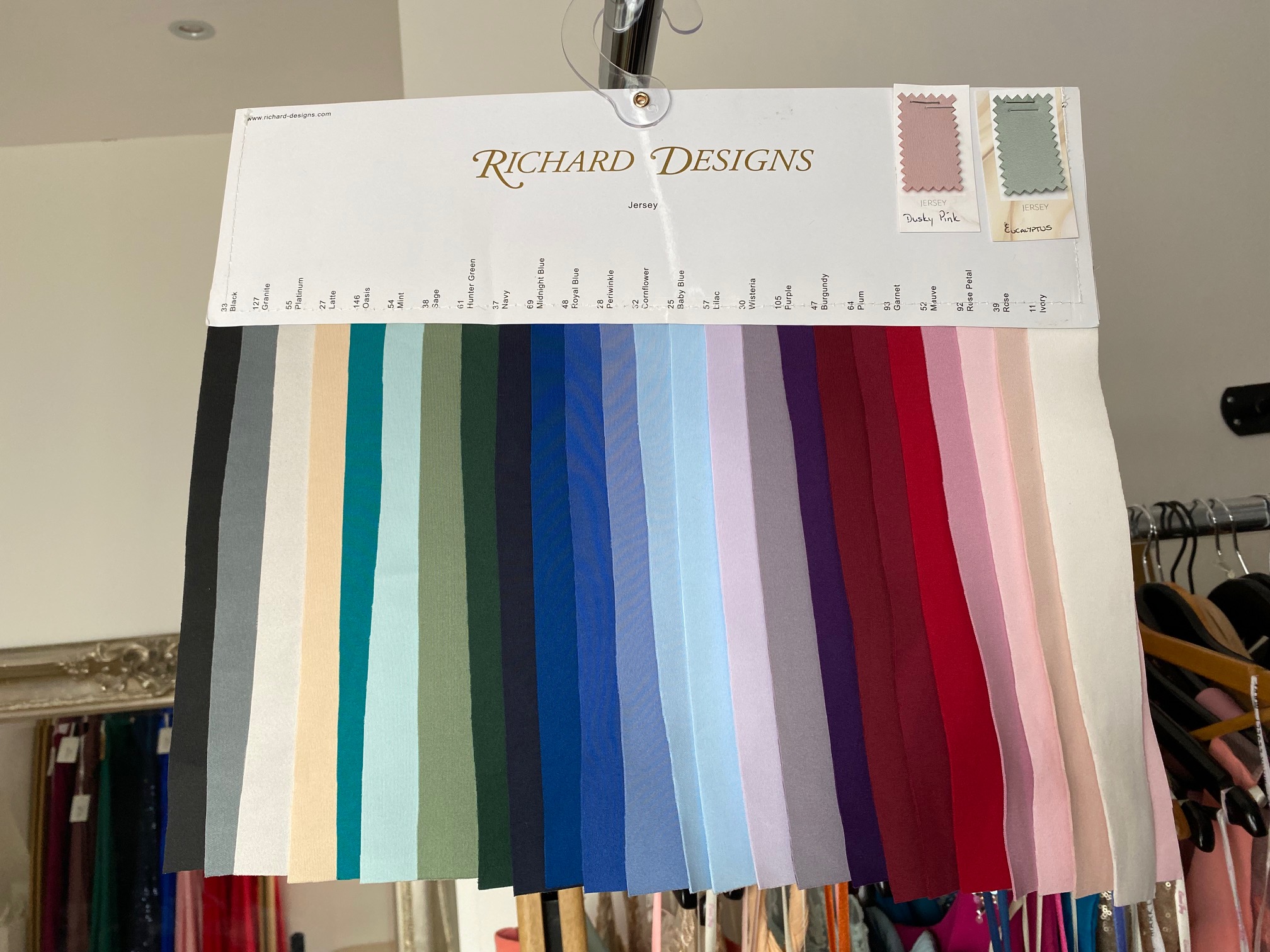 An elegant and simple jersey dress with flattering square neckline in a fit and flare style. Seams have been added to the front and back bodice to give structure, whilst extra detail has been added to the back body, with a low scoop neckline, and an added, sheer chiffon self-tie. This dress is shown here in Navy, and is available to order in 26 jersey colours.